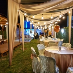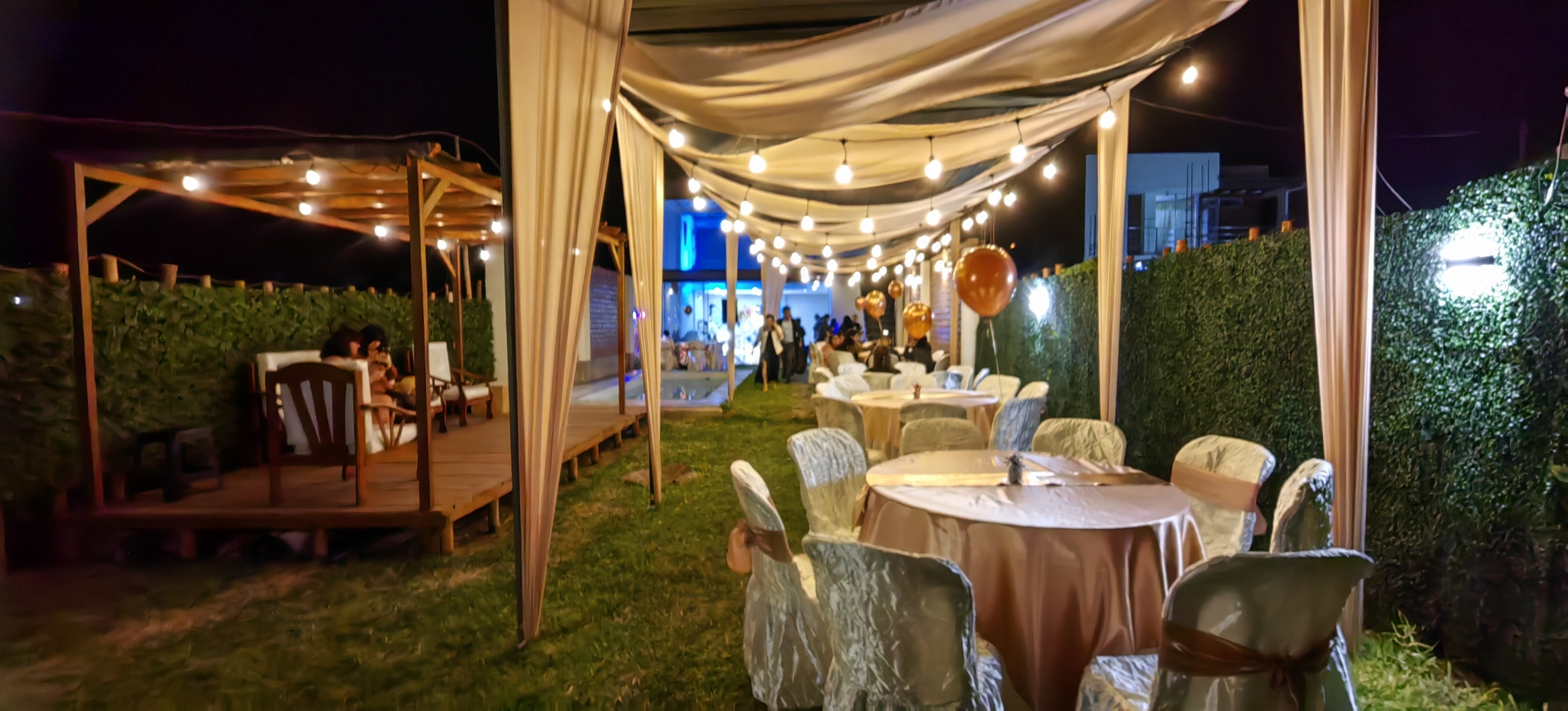 - 1 Pergola de madera elevada ideal para decoraciones tematicas.