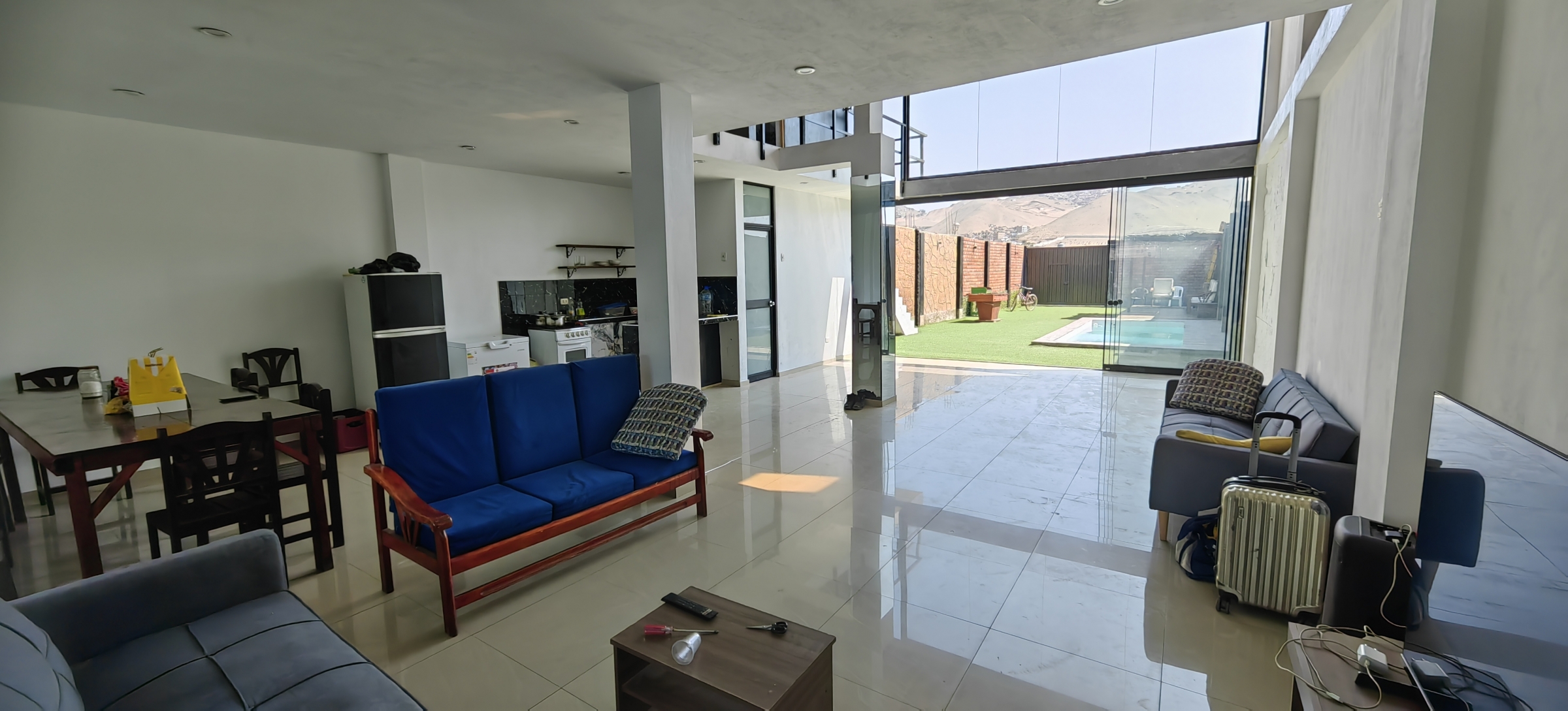 - 1 sala, 1 comedor y 1 cocina en concepto abierto grande ideal para eventos y fiestas.