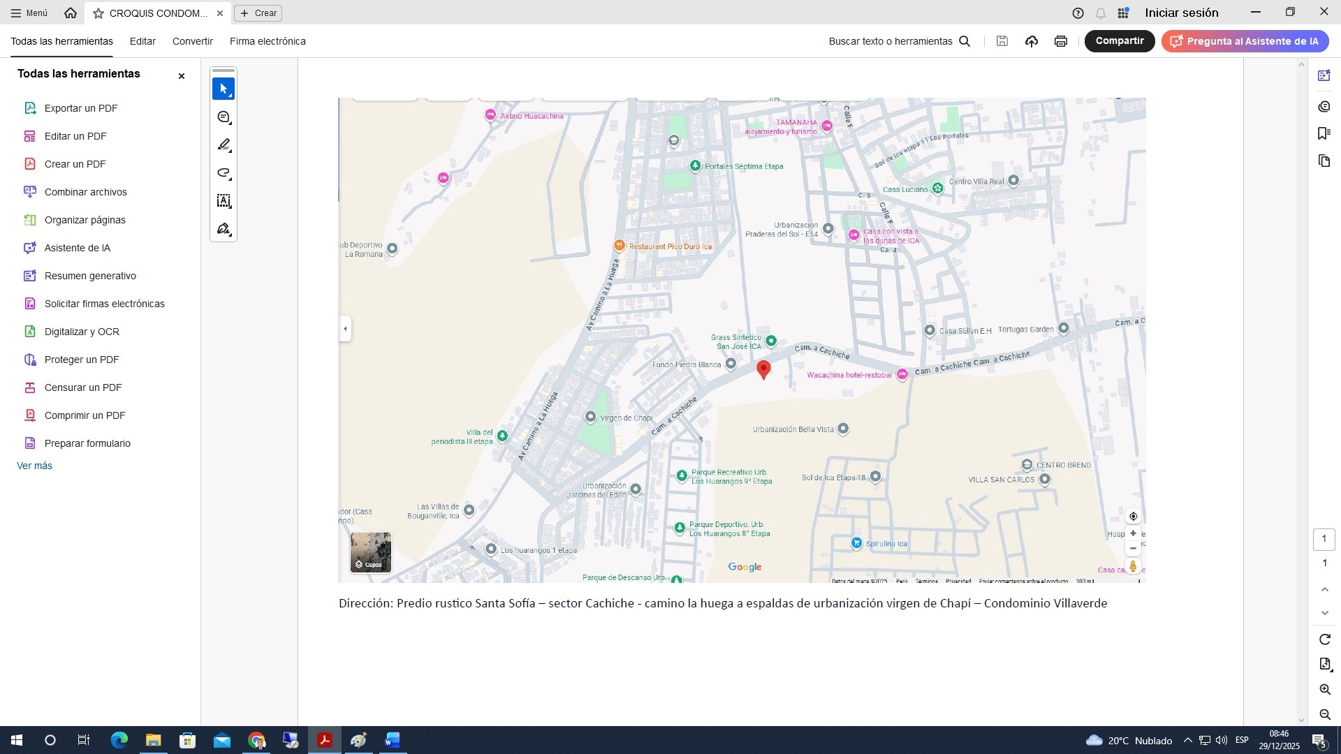 Dirección: Predio rústico Santa Sofía, sector Cachiche, Camino a la Huega, Espaldas de Urbanización Virgen de Chapi – Condominio Villaverde.