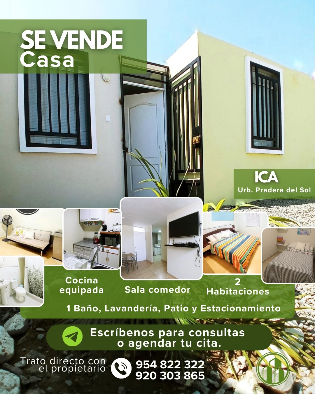 Casa Praderas del Sol tercera etapa, a 5 minutos de Huacachina 1.8 kilómetros distancia. 2 habitaciones camas de 2 plazas sala comedor, agua caliente, Rotoplast, rejas de seguridad cochera AT 90 m2 AC 45 m2 actualmente en airbnb como negocio, se vende por expansión de otro negocio