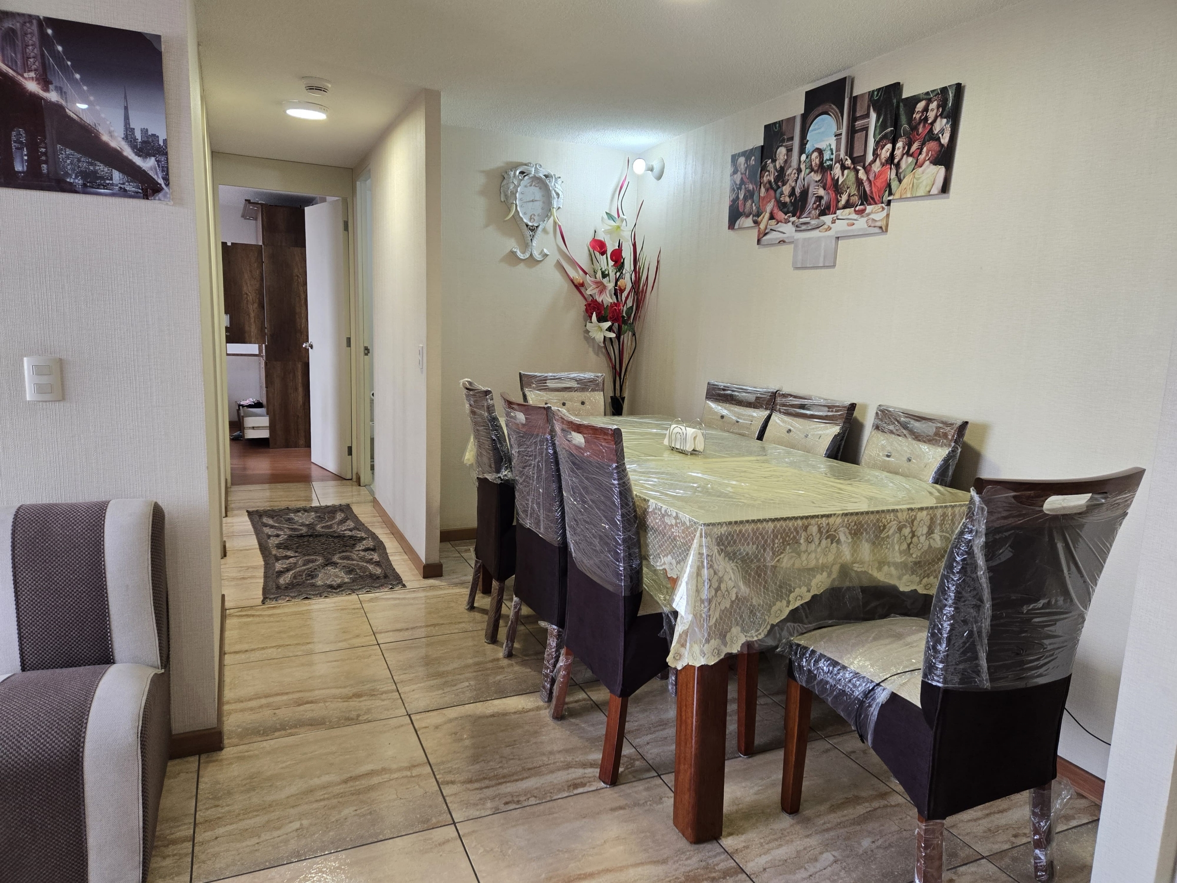 El departamento cuenta con cochera, 3 dormitorios, 2 baños, 1 sala, 1 comedor, 1 cocina, 1 therma de 50 litros para agua caliente, gas natural para la cocina, acceso por ascensor y escaleras, ademas cuenta con areas comunes, cancha de fulbito, zona de parrillas, juego para niños, gimnasio, locales para eventos y cumpleaños, ubicacion piso 10 vista a la av. Canta del condominio ciudad nueva, Callao